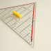 Лінійка трикутник - це інструмент для шиття та моделювання одягу. Така лінійка допомагає створювати точні виміри, креслення кутів та прямих ліній на тканині. Ручка полегшує роботу, надаючи додатковий комфорт у триманні та контролі над лінійкою під час креслення або розкрою тканини, а яскравий жовтий колір легко помітний на робочому місці, що запобігає втраті. Лінійка часто використовується для перенесення різних мірок на тканину, особливо корисна при роботі з викрійками, коли важливо дотримуватися точних кутів і ліній.
