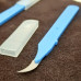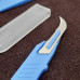 Вигнутий розпорювач швів використовується для розрізання ниток і видалення небажаних швів. Його вигнута форма леза дозволяє легко дістатися до важкодоступних місць і акуратно розрізати нитки, не пошкоджуючи тканину. Вигнута форма леза дозволяє легко маневрувати інструментом і розрізати нитки під різними кутами. Розпорювач має захисний ковпачок, який запобігає випадковим порізам, коли інструмент не використовується.